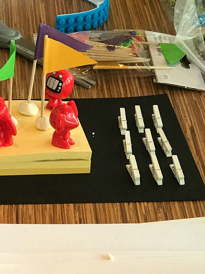 Tools: The tools offered included rulers, tape, Stanley knife, markers, glue, colored craft paper, post-its, scissors and a 3Dooler pen.