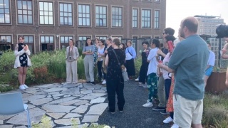Ook werden de deelnemers in Rotterdam verwacht én op de Amstelcampus van de Hogeschool van Amsterdam. Daar vond een netwerk event plaats met de AIxDesign Community Amsterdam. Vanwege het prachtige weer verzamelden alle deelnemers zich op het dak van het Benno Premsela Huis!