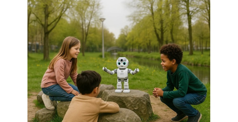 Digitale technologie verbieden is geen oplossing: het is aantrekkelijk en draagt bij aan digitale geletterdheid. Maar wat als we technologie inzetten om kinderen juist weer met elkaar te verbinden? Uit onderzoek blijkt dat kinderen enthousiast reageren op sociale robots: ze luisteren ernaar, spelen ermee en zien ze als een soort speelkameraad.